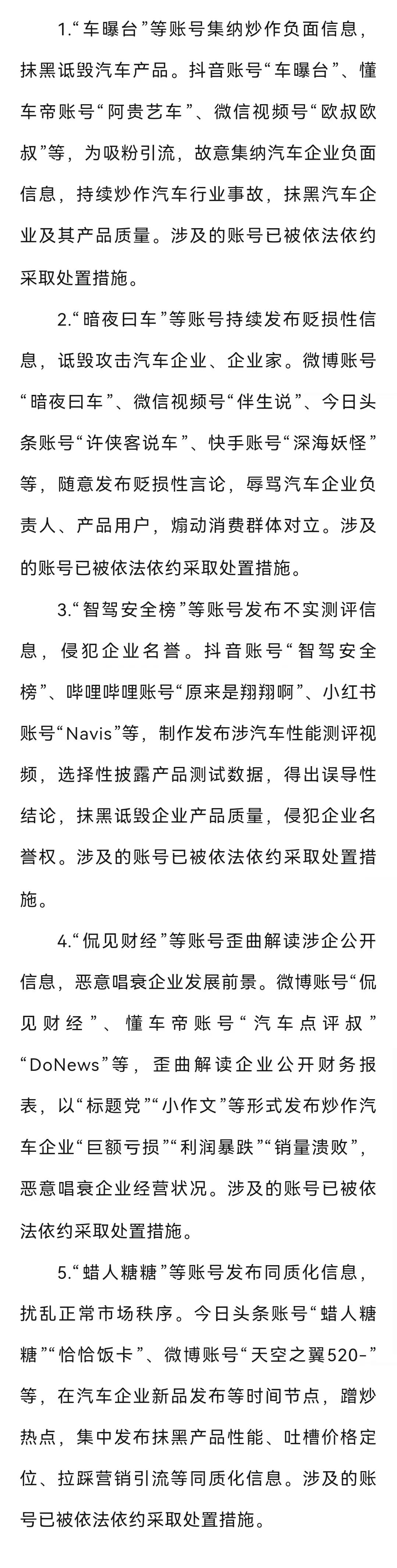 2.汽车行业网络乱象专项整治行动公开曝光第二批典型案例:近期,国家网信办会同工业和信息化部等部门持续开展汽车行业网络乱象专项整治行动,从严整治恶意诋毁攻击、散布不实信息、开展虚假测评等违法违规行为。部分典型案例通报如下↓(网信中国)