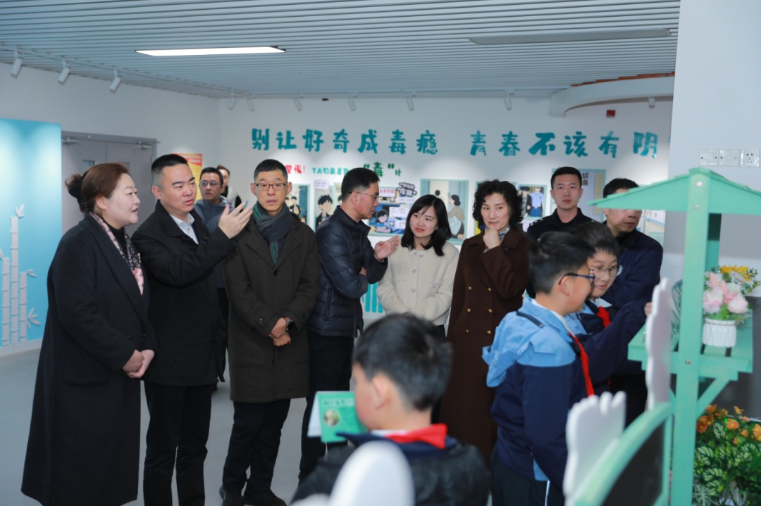 启动仪式前,与会领导实地察看学校禁毒基地及禁毒流动宣教车。与学生们一起聆听“追光讲堂”禁毒主题宣讲。现场通过多媒体演示、仿真毒品实物观摩、禁毒知识现场问答互动沉浸式体验,使同学们近距离认识毒品伪装,了解涉毒危害。