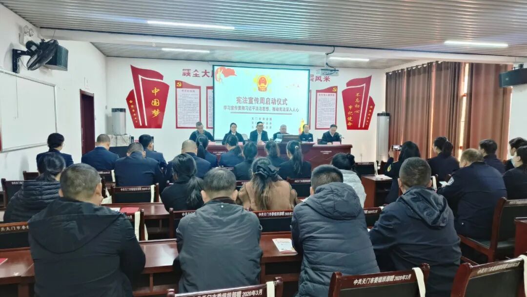 12月1日上午,天门市在石家河镇马溪社区举行2025年“12·4”国家宪法日暨宪法宣传周启动仪式。市委政法委、市法院、市检察院、市公安局、市司法局、市普法办、市税务局、石家河镇政府分管负责同志及工作人员共计60余人参加活动。启动仪式上,集中观看了全国宪法宣传视频《宪法的颜色》;全体人员共同学习了习近平总书记关于宪法的重要论述;政法系统2025年度新录取公务员代表进行了宪法宣誓。启动仪式结束后,开展普法宣传惠民活动。现场共发放宪法文创布袋、书籍、折页等800余份。