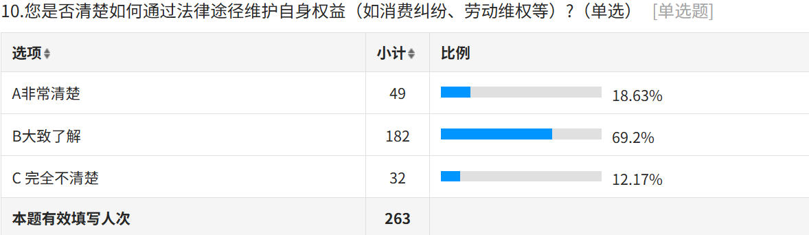 图一:“您是否清楚如何通过法律途径维护自身权益”问题的调查问卷结果