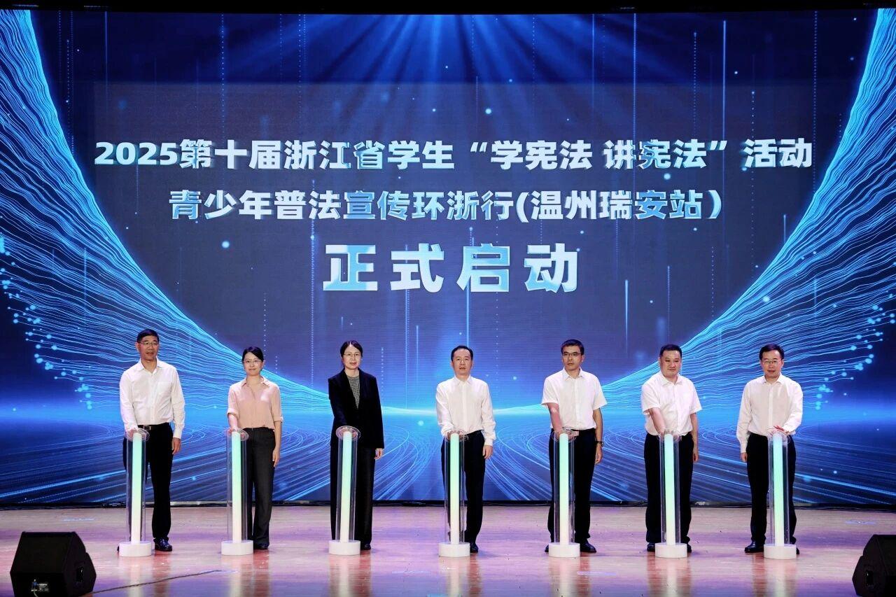 “红旗之下,法治,为信念筑牢根基!”伴随着选手们铿锵有力的演讲,台下观众掌声雷动。10月19日,第十届浙江省学生“学宪法 讲宪法”活动省级决赛展演暨颁奖仪式在浙江省瑞安中学举行。浙江省教育厅党组成员、副厅长陈仁坚出席展演仪式并致辞。省司法厅党委委员、副厅长徐海江,省公安厅、省高级人民法院、省人民检察院相关负责人出席仪式并为获奖选手颁奖。