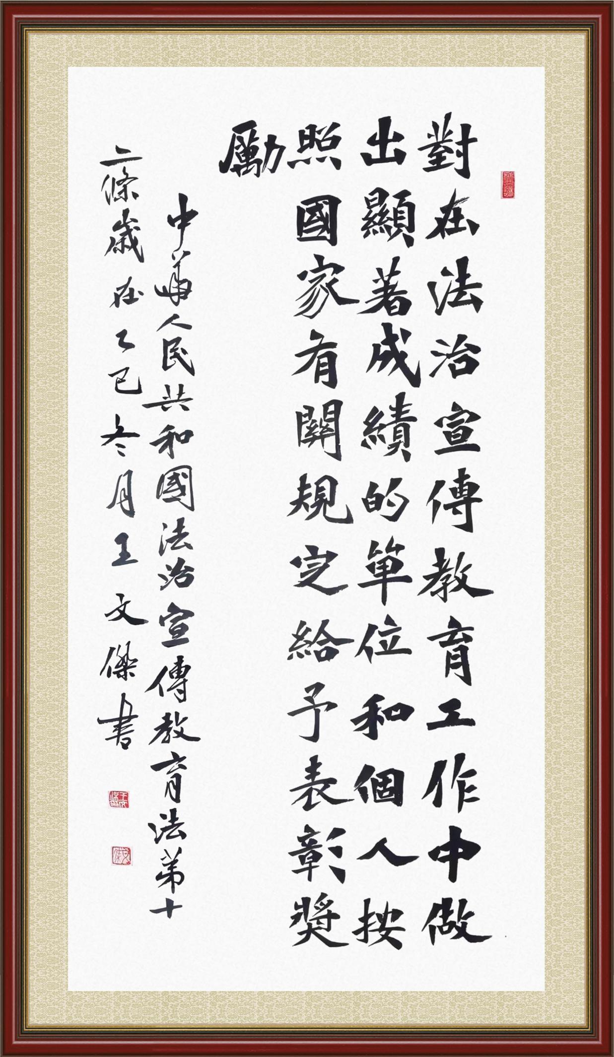 2020年7月11日,由法治日报社主办的“书·法”系列活动正式启动,先后书写《中华人民共和国民法典》《中华人民共和国宪法》《中华人民共和国民营经济促进法》等21部法律法规。