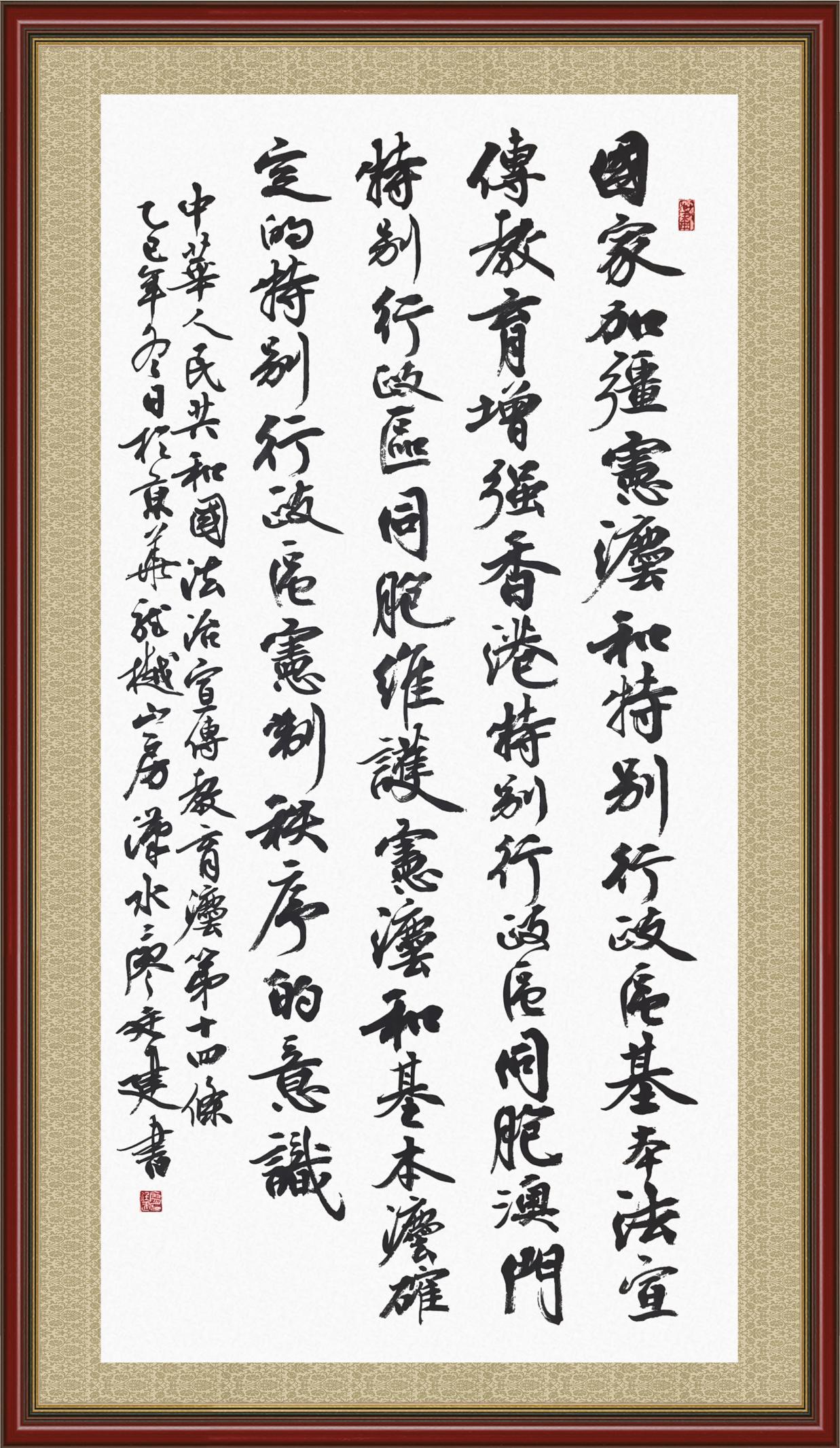 2020年7月11日,由法治日报社主办的“书·法”系列活动正式启动,先后书写《中华人民共和国民法典》《中华人民共和国宪法》《中华人民共和国民营经济促进法》等21部法律法规。