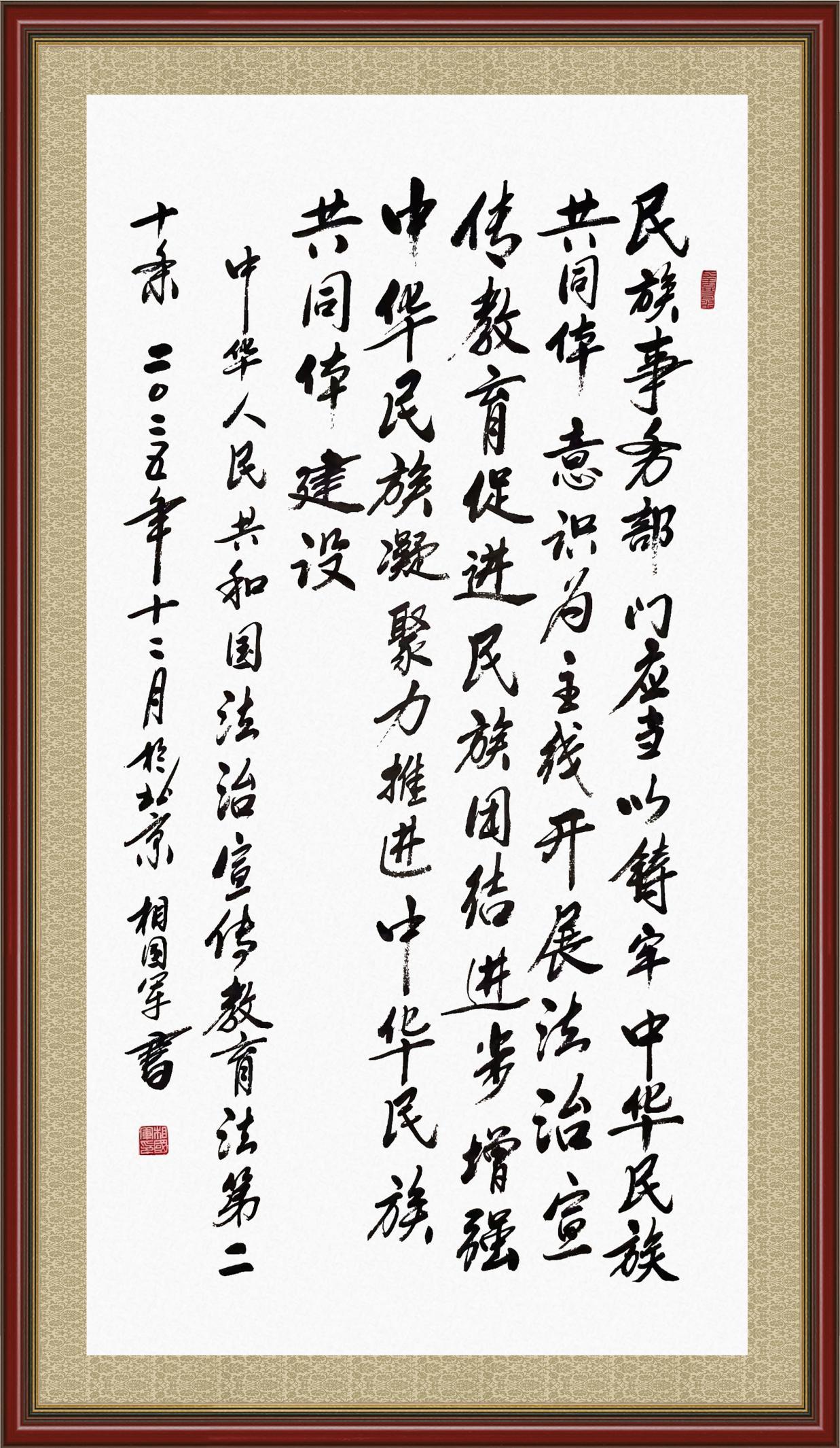 《中华人民共和国法治宣传教育法》自2025年11月1日起开始施行。法治宣传教育是全面依法治国的长期基础性工作。法治宣传教育法对提升全民法治素养和社会治理法治化水平、推动建设更高水平的社会主义法治国家具有重要意义。为更好地学习、宣传、贯彻这部法律,法治日报社联合司法部普法与依法治理局,开展了“‘书·法’系列活动之书写《中华人民共和国法治宣传教育法》”活动。