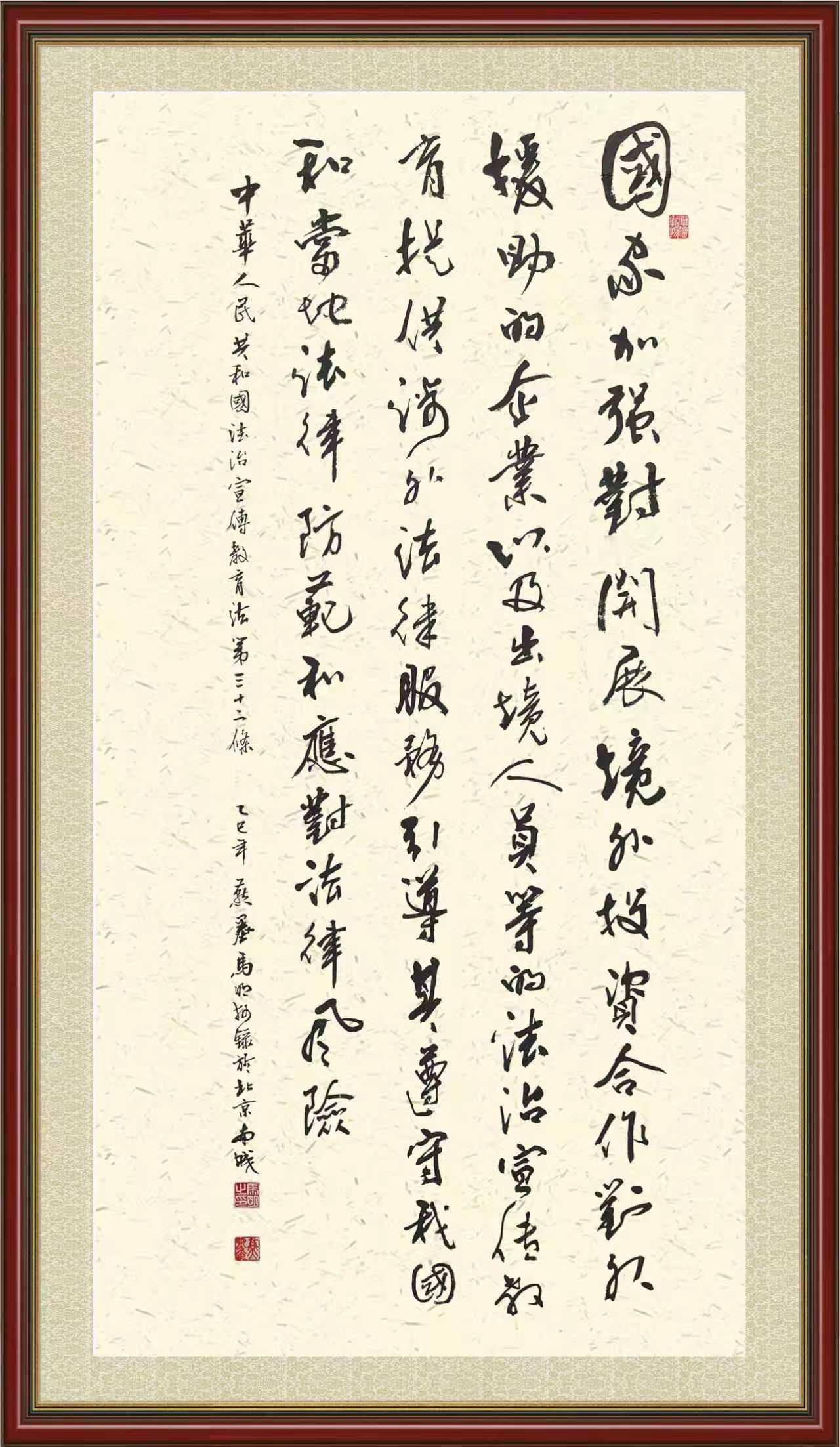 2020年7月11日,由法治日报社主办的“书·法”系列活动正式启动,先后书写《中华人民共和国民法典》《中华人民共和国宪法》《中华人民共和国民营经济促进法》等21部法律法规。