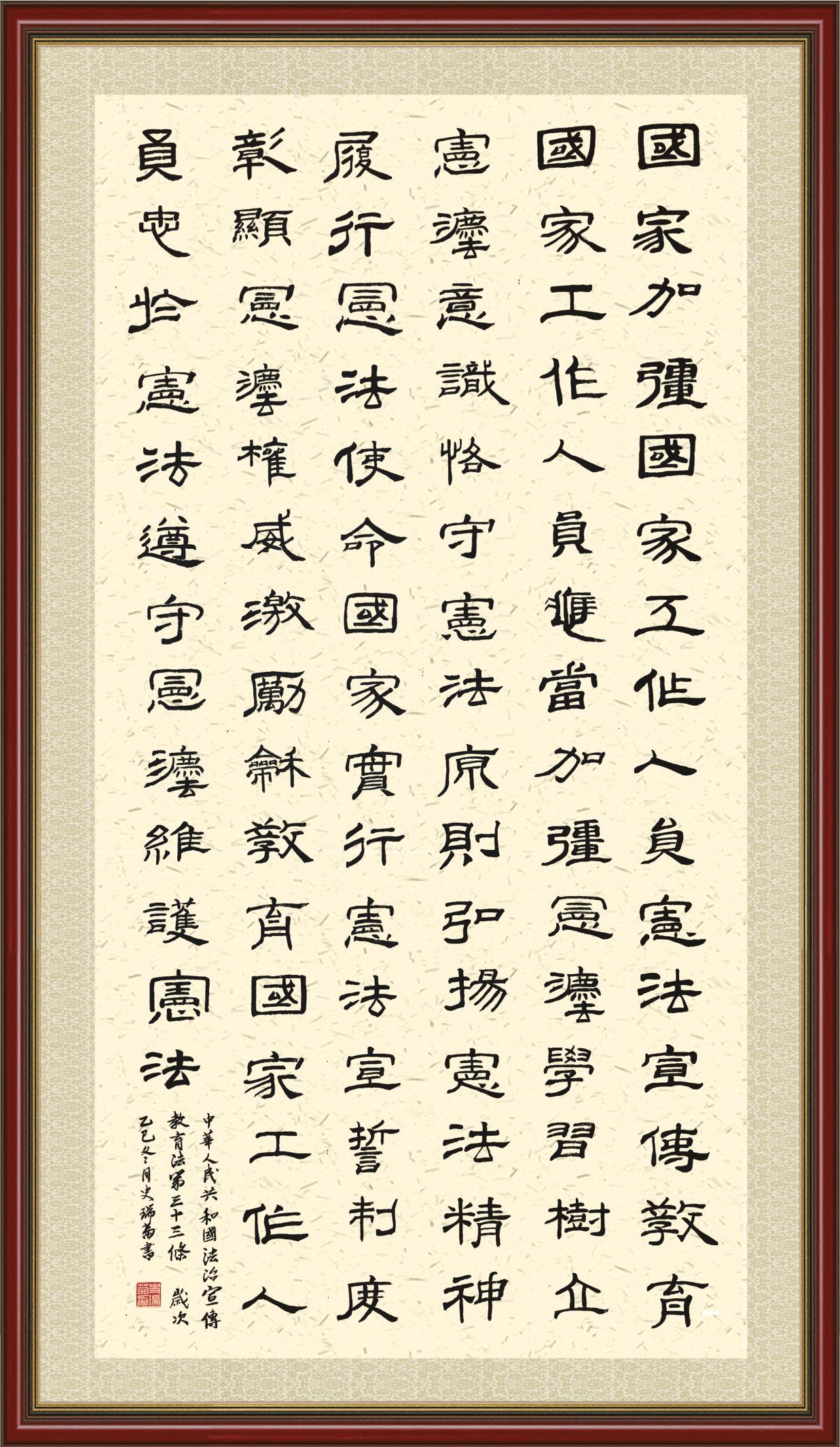 《中华人民共和国法治宣传教育法》自2025年11月1日起开始施行。法治宣传教育是全面依法治国的长期基础性工作。法治宣传教育法对提升全民法治素养和社会治理法治化水平、推动建设更高水平的社会主义法治国家具有重要意义。为更好地学习、宣传、贯彻这部法律,法治日报社联合司法部普法与依法治理局,开展了“‘书·法’系列活动之书写《中华人民共和国法治宣传教育法》”活动。