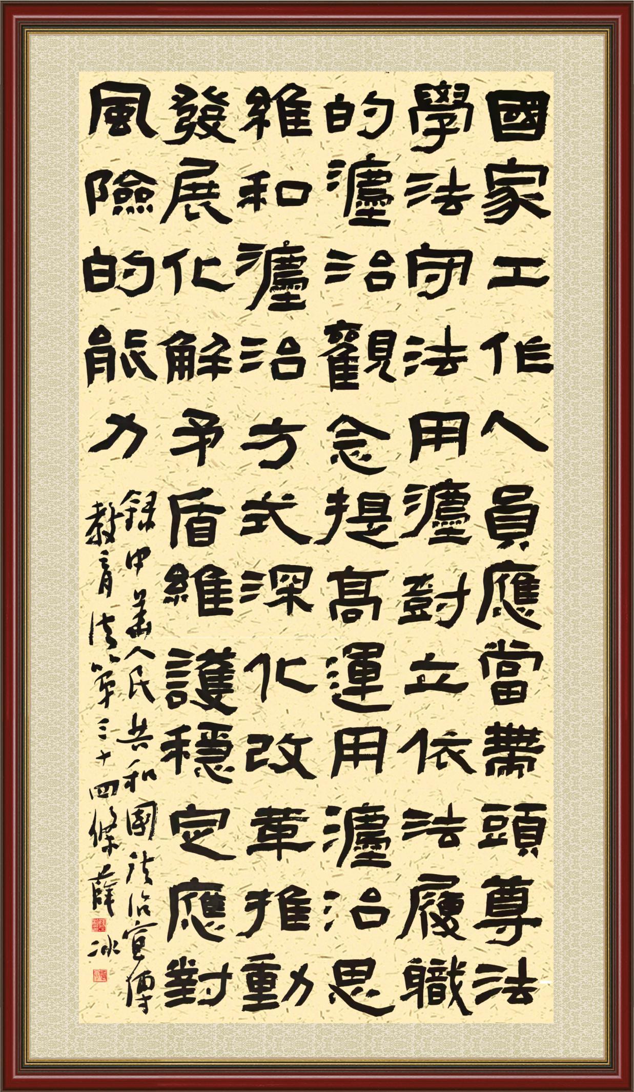 2020年7月11日,由法治日报社主办的“书·法”系列活动正式启动,先后书写《中华人民共和国民法典》《中华人民共和国宪法》《中华人民共和国民营经济促进法》等21部法律法规。