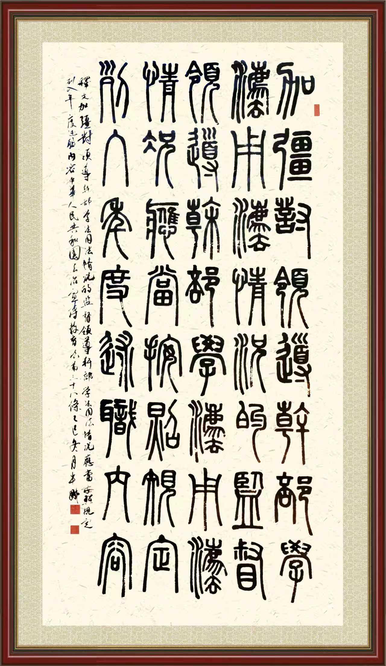 2020年7月11日,由法治日报社主办的“书·法”系列活动正式启动,先后书写《中华人民共和国民法典》《中华人民共和国宪法》《中华人民共和国民营经济促进法》等21部法律法规。