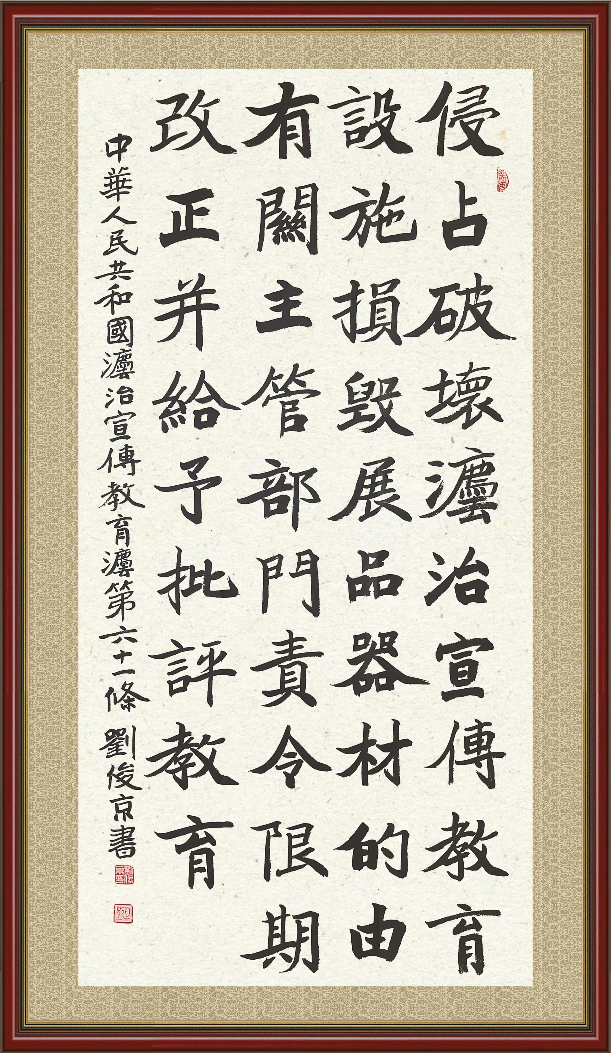 2020年7月11日,由法治日报社主办的“书·法”系列活动正式启动,先后书写《中华人民共和国民法典》《中华人民共和国宪法》《中华人民共和国民营经济促进法》等21部法律法规。